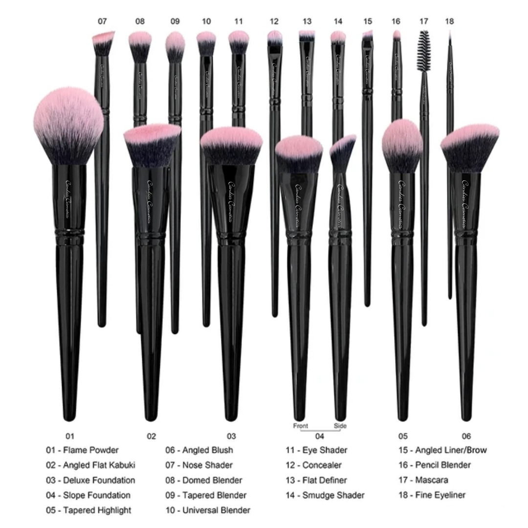 Our 18-piece brush set is the ultimate all-in-one set to help you achieve a complete, flawless makeup look from start to finish. This carefully curated set includes face and eye brushes for foundation, powder, contour, blush, highlight, eyeshadow application, blending, and precise detailing.